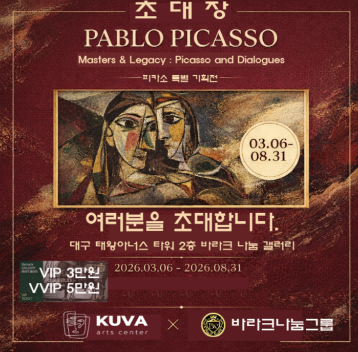 ‘피카소 인 대구: 시대를 넘는 마스터피스’는 과거의 이름을 불러내는 데 머물지 않는다. 서로 다른 시대의 화면이 한 공간에서 맞닿으며 근현대 미술의 흐름을 다시 이어간다. 세계 미술의 시간이 대구에서 펼쳐진다.