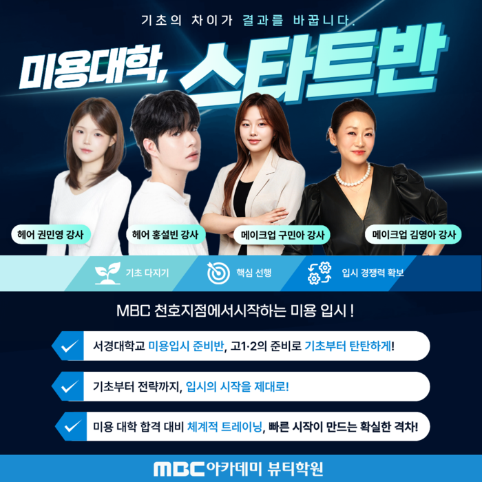 ‘미용입시 스타트반’은 ▲전공별 기초 테크닉 트레이닝 ▲색채 및 디자인 기초 감각 훈련 ▲입시 전형 분석 및 개인별 맞춤 로드맵 설계 등으로 구성된다. 특히 전공을 확정하지 못한 학생들도 다양한 실습을 통해 자신의 적성과 흥미를 탐색할 수 있도록 유연한 커리큘럼을 운영하는 것이 특징이다.