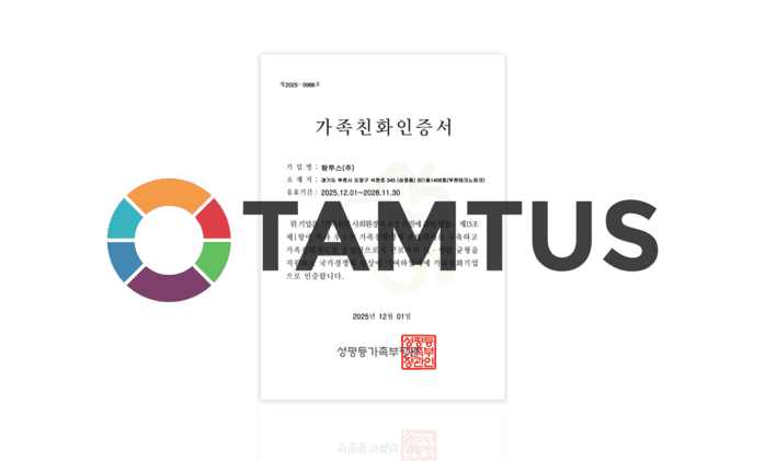 탐투스(주)는 성평등가족부가 주관하는 2025 년 가족친화인증 기업으로 선정됐다고 2일 밝혔다.