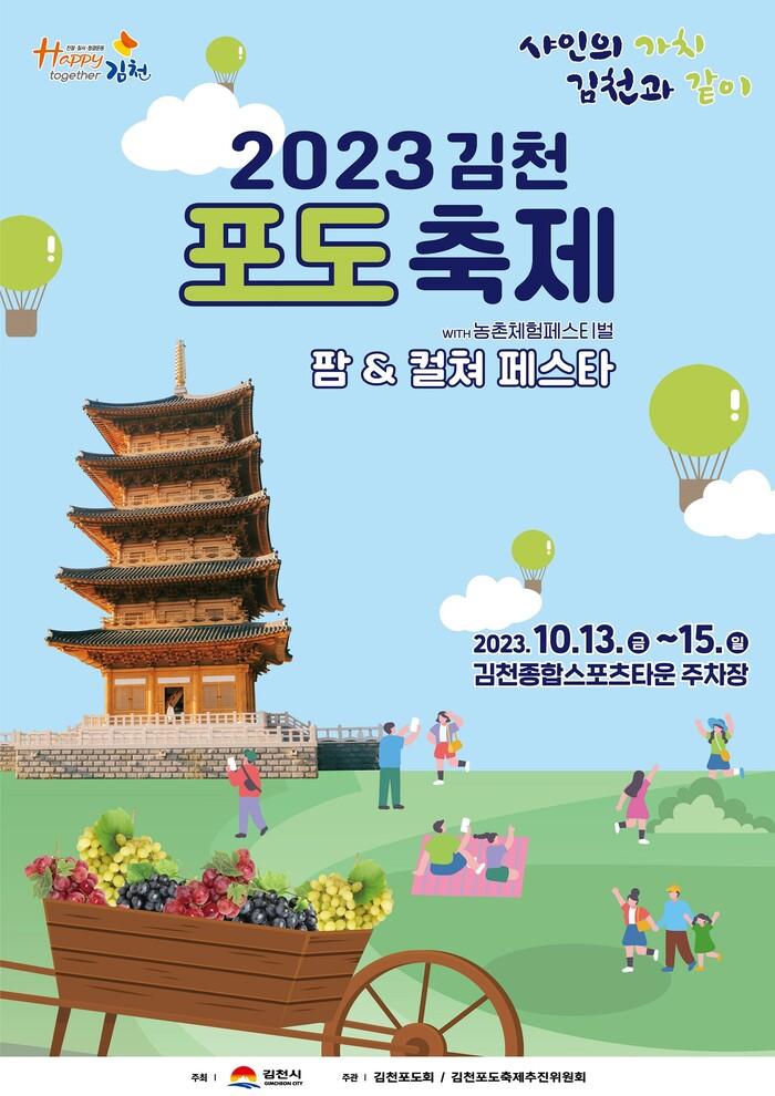 [김천=박병상 기자] 경북 김천시(시장 김충섭)는 김천포도회·김천포도축제추진위원회 주관으로 2023 김천포도축제를 오는 10월 13일부터 15일까지 3일간 김천종합스포츠타운 주차장 일원에서 개최한다.