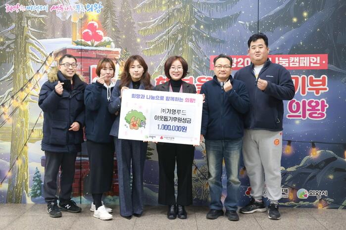 | ▲ 의왕시가 12월 22일 (주)기영푸드로부터 어려운 이웃을 돕기 위한 성금 100만원을 기부받았다 /사진제공=의왕시 |