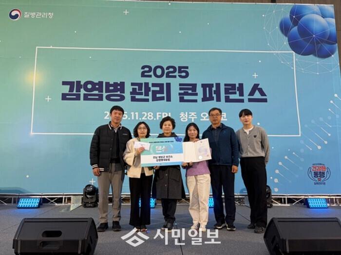 | ▲ 영암군보건소, 지난 11월 28일 청주 오스코에서 열린 질병관리청의 ‘2025년 감염병 콘퍼런스’의 감염병 정책 제안 공모전에서 은상 수상 기념촬영 / 영암군 제공 |