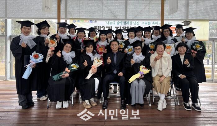 [강진=정찬남 기자] 전남 강진군이 지난 25일 보은숲정원에서 ‘2025년 제3기 자원봉사대학 수료식’을 개최하며 지역사회 봉사 활동을 이끌 신규 자원봉사 리더 25명을 배출했다.