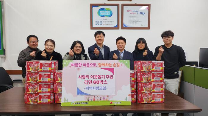 지역사랑모임은 지역 내 소외된 이웃을 위해 꾸준히 봉사하고 있으며, 작년에도 쌀을 후원하는 등 매년 지역사회를 위한 나눔 활동을 이어오고 있다. 이날 전달된 컵라면은 복지 사각지대에 놓인 저소득 취약계층 60가구에 지원될 예정이다.