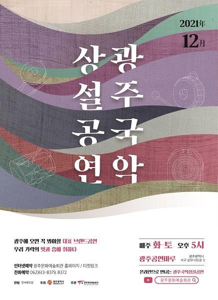 한편 올해 광주국악상설공연은 200여 회 공연과 8800여 명의 관람객, 온라인 공연 조회 9만6000여 회(11월21일 기준)를 기록하는 등 코로나19 상황 속에서도 온·오프라인으로 호응을 얻었다.
