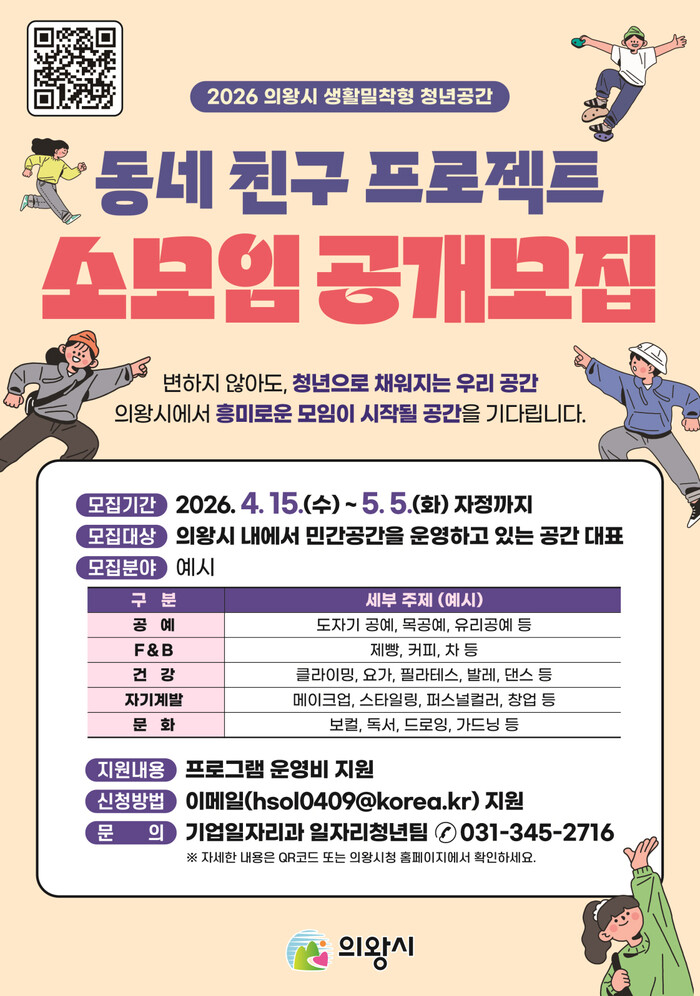 | ▲ 2026 생활밀착형 청년 공간, 동네 친구 프로젝트 홍보 포스터 /자료제공=의왕시 |