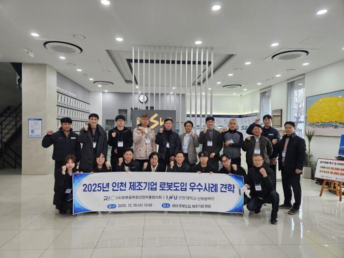 | 인천 제조기업 로봇도입 우수사례 견학 참가자들이 파이팅을 외치고 있다. [사진=인천대] |