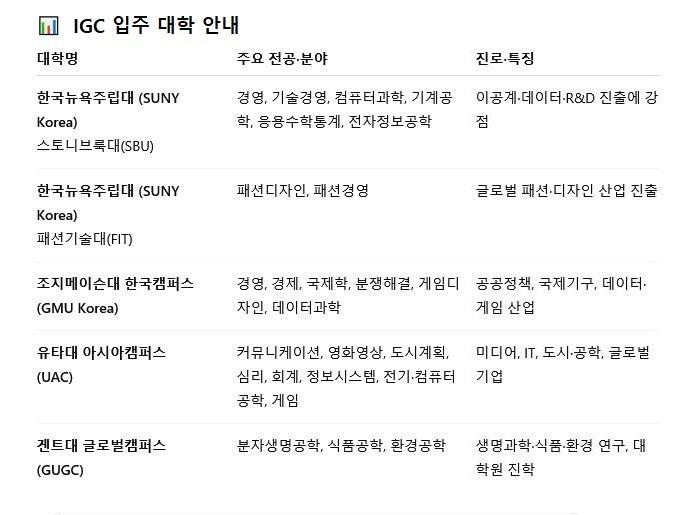 21일 관계자 등에 따르면 미국과 유럽을 대표하는 명문 대학들이 글로벌캠퍼스 형태로 집적된 IGC는 한국 고등교육 국제화의 상징적 사례로 안착된 상태다. 각 대학은 교육 인프라를 공유하면서도 본교와 동일한 학사 기준과 졸업 요건을 적용해 학위를 수여한다. 전교육 과정이 영어로 진행되고, 교육과정·평가·학위의 국제적 동등성이 유지되면서 국내에서도 해외 정규 학위 취득이 가능하다.