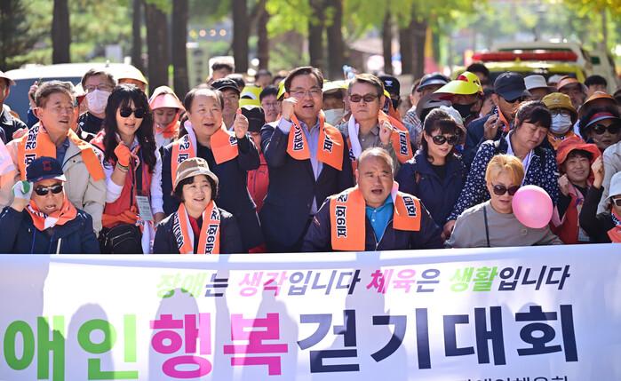 이날 걷기대회에는 김학홍 경상북도 행정부지사, 경상북도의회 박영서 부의장, 박선하 행정보건복지위원회 부위원장 및 오태희 경북장애인체육회 부회장이 참가한 가운데 장애인 및 비장애인 2천여 명이 함께해 가을의 정취를 만끽하는 화합의 시간을 가졌다.