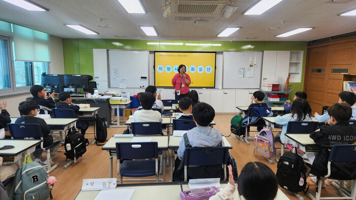 | ▲ 학교로 찾아가는 의왕향토사료관 프로그램이 4월 14일 부곡초등학교에서 진행했다 /사진제공=의왕시 |