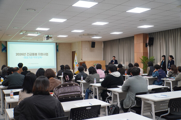전라남도사회서비스원은 지난 26일 전남사회복지회관에서 도내 긴급돌봄 지원사업 제공기관 관계자 50여명을 대상으로 ‘2026년 긴급돌봄 지원사업 제공기관 간담회 및 직무교육’을 개최했다고 밝혔다.