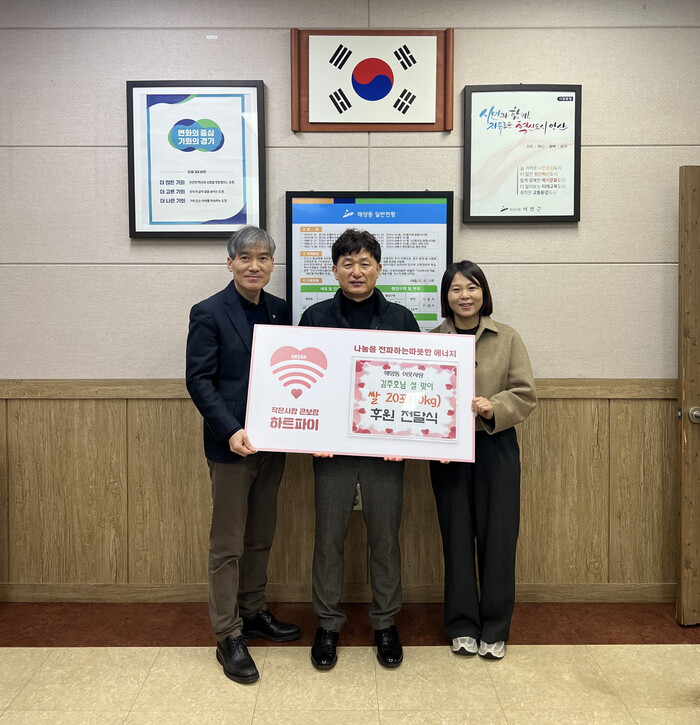 [안산=송윤근 기자] 경기 안산시(시장 이민근) 상록구 해양동 행정복지센터는 지난 11일 기부에 앞장서는 김주호 씨로부터 관내 독거노인 및 중장년 1인가구를 위한 쌀 10kg 20개를 기탁받았다고 12일 밝혔다.