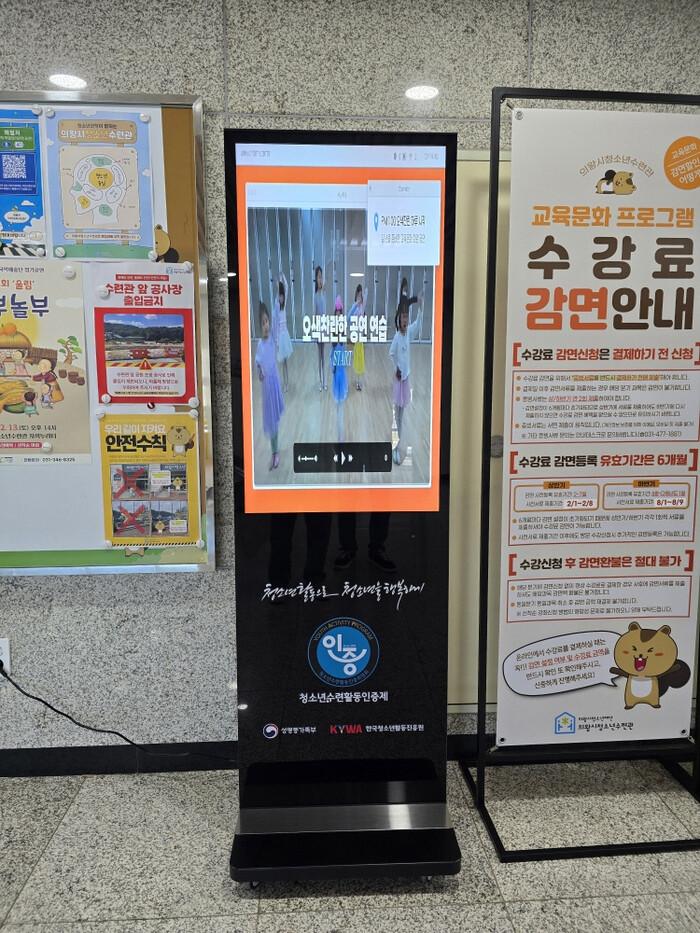 디지털현판(DID) 보급사업은 디지털 기반의 청소년활동 홍보 환경을 조성하고, 청소년인증수련활동 운영기관의 활성화를 지원하기 위해 추진되는 사업이다. 의왕시청소년수련관은 청소년인증수련활동 운영 실적과 수련시설 종합평가에서 우수한 성과를 인정받아 보급기관으로 선정됐다.