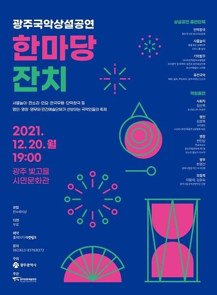 공연에는 올해로 3년차를 맞이한 광주 대표 브랜드 공연인 ‘광주국악상설공연’을 코로나19 상황 속에서도 성황리에 이끌어 준 지역 민간예술단체와 명인·명창·명무가 출연한다.
