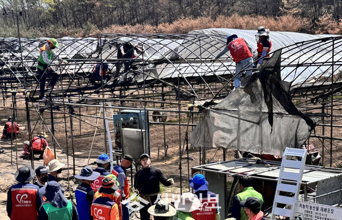| ▲ 산불 피해 현장 비닐하우스 복구 작업 자료사진 / 광주광역시 남구 제공 |