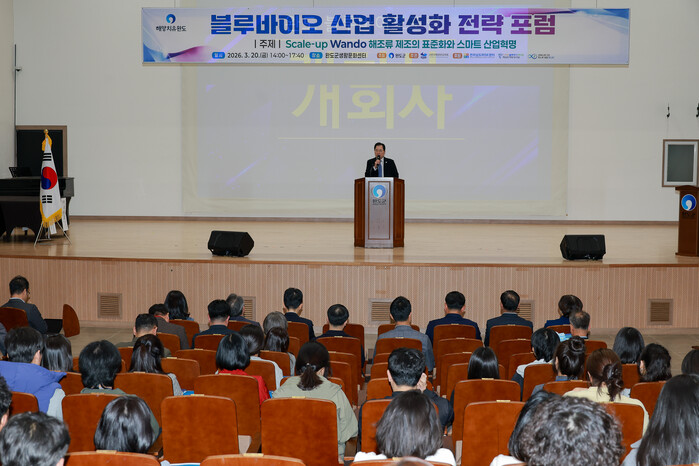 [완도=김현종 기자]완도군(군수 신우철)과 (사)한국해양바이오학회(회장 백승필)은 지난 20일 완도군 생활문화센터에서 ‘블루바이오산업 활성화 전략 포럼’을 개최했다.
