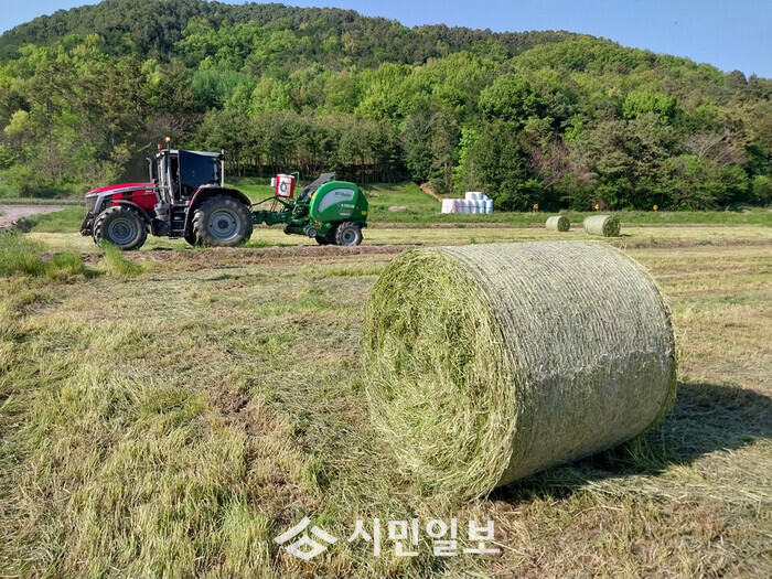 | ▲ 이탈리안라이그라스 사료 사일리지 용 롤 작업 자료사진 / 강진군 제공 |