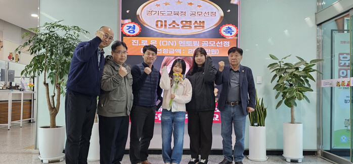 | ▲ 진로온 멘토링 사업 경기도교육청 공모 사업 선정된 관계자들이 기념 촬영을 하고 있다 /사진제공=의왕시 |