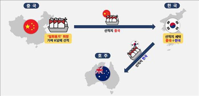 | 선적지 세탁 가짜 K담배 밀수출 개요도 (사진=인천세관) |