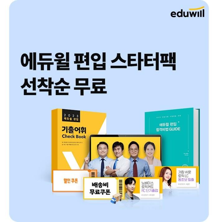 에듀윌에 따르면 ‘편입 스타터팩 무료배포’는 에듀윌 신규 회원에게 대학 편입 시작 시 도움이 되는 스타터팩을 무료로 제공하는 이벤트다.