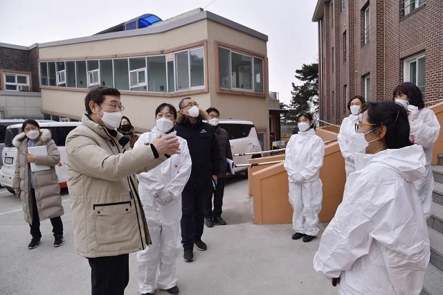 [광주=정찬남 기자] 이용섭 광주광역시장은 설 명절을 맞아 지난 1일 오후 서구 노인복지시설인 벧엘요양원을 방문해 코로나19 방역상황을 점검하고 요양보호사들을 격려했다./광주광역시 제공