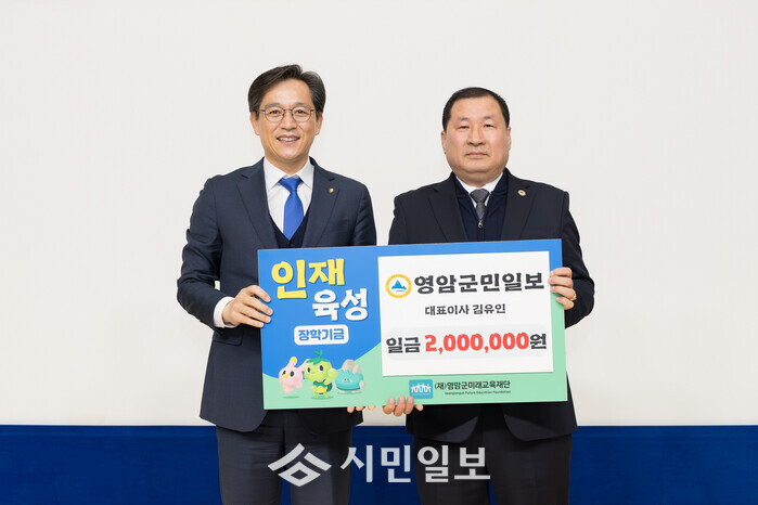 김유인 영암군민일보 대표는 2023년에도 영암군미래교육재단에 장학금 200만 원을 기탁하는 등 지역 인재 육성을 위해 꾸준한 나눔을 이어오고 있다.