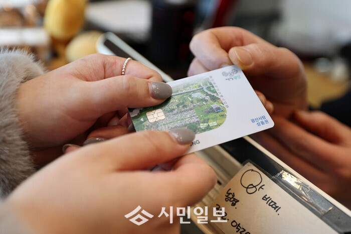 | ▲ 광산사랑상품권 카드 사용 자료사진 / 광주광역시 광산구 제공 |