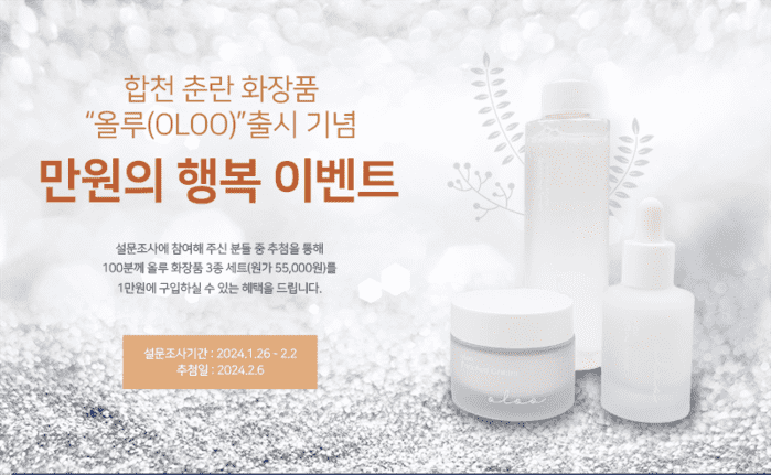 이번 이벤트는 화장품 올루 출시를 기념해 홍보 및 설 연휴기간을 맞아 따뜻한 마음을 담은 선물을 부담없이 주고받을 수 있도록 하기 위해 기획됐다.