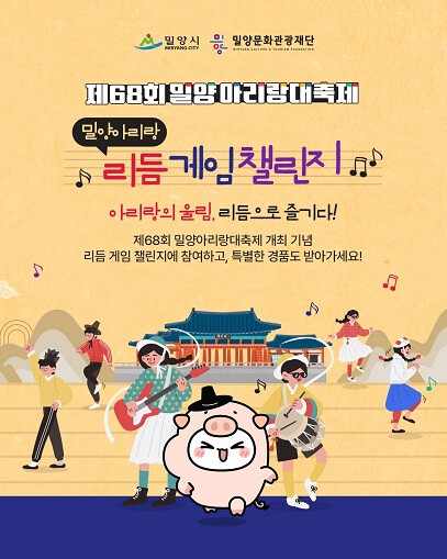 이영삼 공보감사담당관은 “남녀노소 누구나 쉽게 즐길 수 있는 리듬게임 이벤트를 통해 밀양아리랑대축제를 더욱 친근하게 알리고자 한다”며 “축제를 기다리는 많은 분들의 관심과 참여를 부탁드린다”라고 전했다.