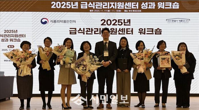 | ▲ 강진군 어린이·사회복지급식관리지원센터, 지난 17일 식품의약품안전처 주관한 2025년 제7회 어린이·사회복지 급식지원 우수사례 공모전 장려상 수상 기념촬영 / 강진군 제공 |