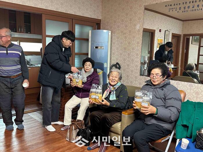 | ▲ HD현대 베트남 이주노동자, 영암군 삼호읍종합사회복지관과 시니어클럽에 유자차와 백향과 수제청 크리스마스 선물 자료사진 / 영암군 제공 |