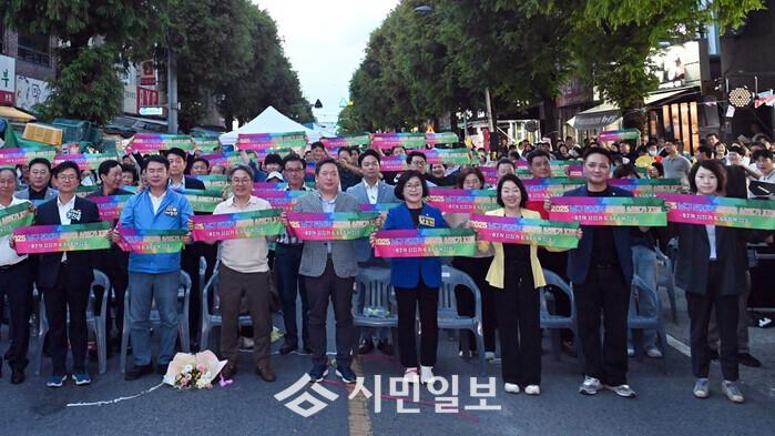 | ▲ 김병내 광주광역시 남구청장(앞줄 가운데), 관내 진지역 골목형 상점가 지정 선포식 퍼포먼스 / 광주광역시 남구청 제공 |