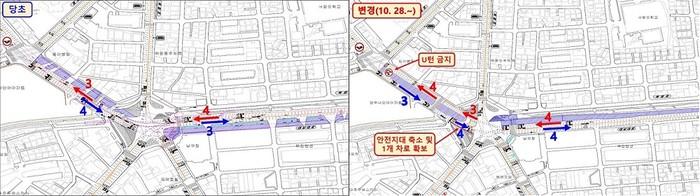 이곳을 운행하는 차량 운전자들은 이번 교통전환으로 인해 그동안 익숙한 차로로 주행을 하게 되면 사고가 발생할 수 있어 변경된 신호와 노면표시 등에 주의가 필요하다.