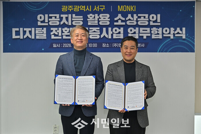 서구는 14일 서울 강남구에 위치한 외식 디지털 솔루션 기업 ㈜먼슬리키친(대표 김혁균) 본사에서 ‘인공지능 활용 소상공인 디지털 전환 실증사업 추진을 위한 업무협약’을 체결했다.