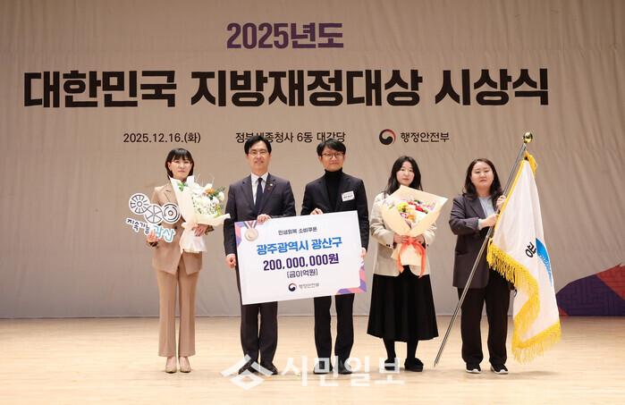 | ▲ 광주광역시 광산구, 지난 16일 정부세종청사에서 열린 ‘2025년 대한민국 지방재정대상 시상식’에서 민생회복 소비쿠폰 분야 집행 우수 지자체 선정 기념촬영 / 광주광역시 제공 |