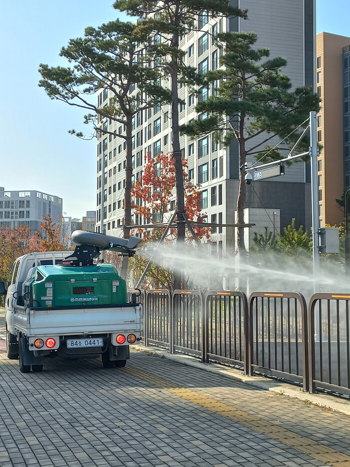 | ▲ 화성특례시 방역소독차량이 생활권 주변에서 친환경 방역소독을 실시하고 있다 /사진제공=화성특례시 |