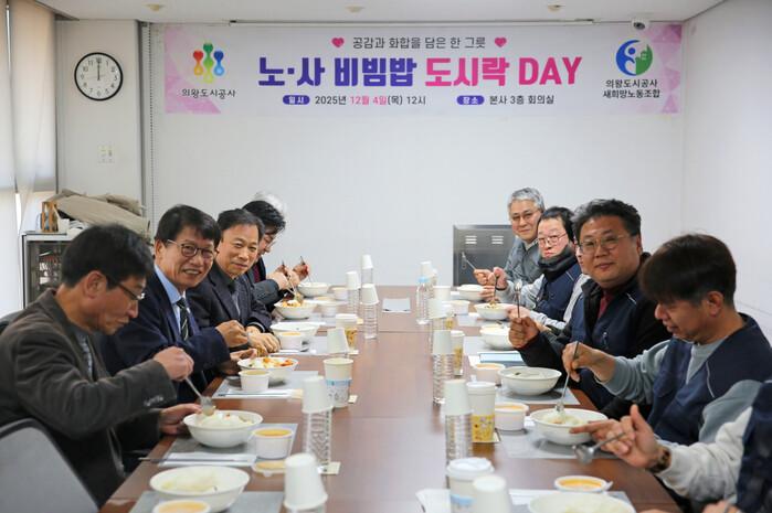 | ▲ 의왕도시공사는 12월 4일 노사 간 협력과 소통을 강화하고 건강한 조직문화 확산을 위한 ‘노·사 비빔밥 도시락데이’ 행사를 개최했다 /사진제공= 의왕시 |