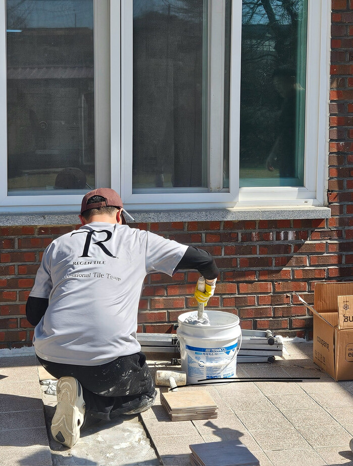 시설 관계자에 따르면 식당 바닥 일부 타일이 파손되며 이용자들의 안전이 우려되는 상황이었으며, 이를 개선하기 위해 리겐타일이 재능기부 형태로 시공을 진행하게 됐다.