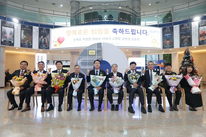 이번 퇴임식은 오제홍 환경국장, 박형일 동부출장소장, 최원교 감사관을 비롯한 9명의 퇴직자 및 가족과 동료, 선후배 공직자들이 함께한 가운데 ▲인사발령통지서 교부 및 공로패 수여 ▲기념영상 및 축하공연 ▲퇴임사 등으로 진행되었으며, 참석자들은 따뜻한 분위기 속에서 퇴직자들의 노고를 되새겼다.
