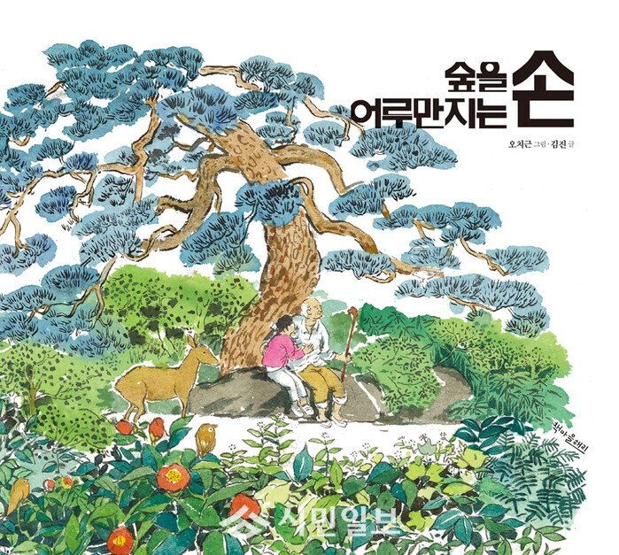‘숲을 어루만지는 손’은 초등 교과서 수록 도서 ‘세종대왕을 찾아라’의 김진 작가가 글을 쓰고, 그림책 ‘해치’, ‘오징어와 검복’의 오치근 작가가 그림을 그렸다.