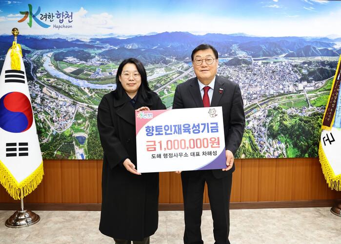 차 대표는 “지역의 미래는 결국 사람에게 달려 있다고 생각한다”며 “합천에서 성장하는 학생들이 지역에 대한 자부심을 갖고 자신의 가능성을 마음껏 펼칠 수 있도록 작은 보탬이 되기를 바라는 마음으로 기탁하게 됐다”고 말했다.