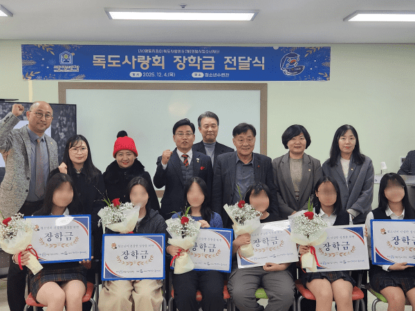 이날 전달식에는 독도사랑회와 재단 관계자, 장학금 수혜 청소년 6명이 참석했다. 의왕시청소년재단과 독도사랑회 의왕지회는 지난 7월 8일 광복 80주년 기념 ‘디지털 독도체험관’을 공동 운영하며 협력의 기반을 마련한 바 있다.