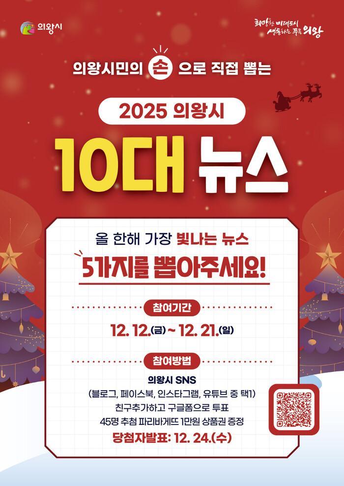 시에서는 득표수가 높은 10건의 뉴스를 ‘2025년 의왕시 10대뉴스’로 선정해 이달 말 시 홈페이지 등을 통해 결과를 발표할 예정이다.