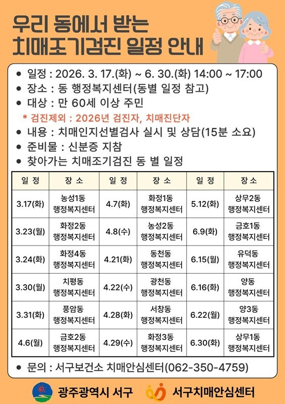 | ▲ ‘찾아가는 치매조기검진’ 일정 안내 이미지 / 광주광역시 서구청 제공 |