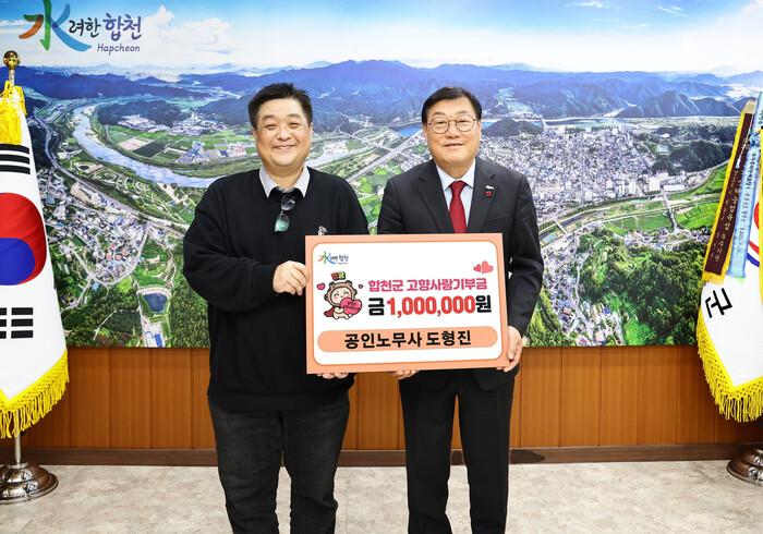 김윤철 합천군수는 “공직 경험을 바탕으로 군정 발전에 지속적으로 힘을 보태주고 계신 도형진 노무사님의 따뜻한 나눔에 깊이 감사드린다”며 “군민과 출향인의 관심과 참여가 합천의 미래를 여는 중요한 동력이 되고 있다”고 말했다.