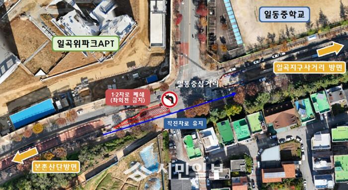 이 구간은 좌회전 대기 공간이 부족한 상황에서 좌회전 교통량이 많아, 상시적으로 교통정체가 발생하고 있다. 특히 차로가 축소되면서 교차로 혼잡이 가중돼 원활한 차량 흐름 확보를 위해 좌회전 금지가 불가피하다고 판단했다.