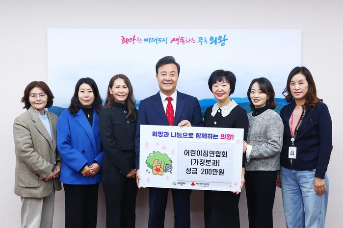 [의왕=송윤근 기자] 경기 의왕시(시장 김성제)는 11월 27일, 의왕시어린이집연합회 가정분과(분과장 김문숙)에서 성금 200만원을 기탁했다고 밝혔다.