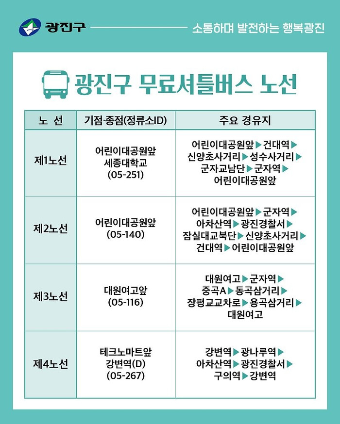 | ▲ 무료셔틀버스노선도.(사진=광진구청 제공) |