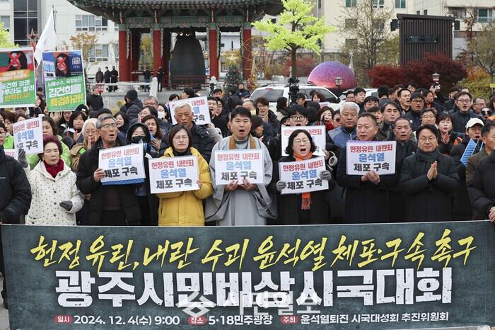 날이 밝은 4일 오전 9시, 시민들은 5·18민주광장으로 모여 비상시국대회를 열고 책임자 처벌을 강력히 요구했다. 강기정 시장은 5·18민주광장에서 시민들과 함께 비상상황을 공유한 뒤 국회를 찾아 대통령 즉각 퇴진과 시민 일상 안전을 촉구했다.