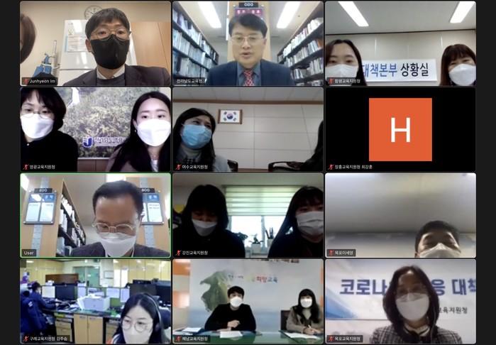 전라남도교육청은 14일(금) 전라남도청과 도내 22개 시·군 교육지원청이 참석하는 긴급 영상회의를 갖고 겨울방학 기간 동안 학원 등에 대한 코로나19 방역 대책을 점검했다.